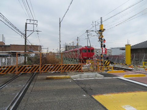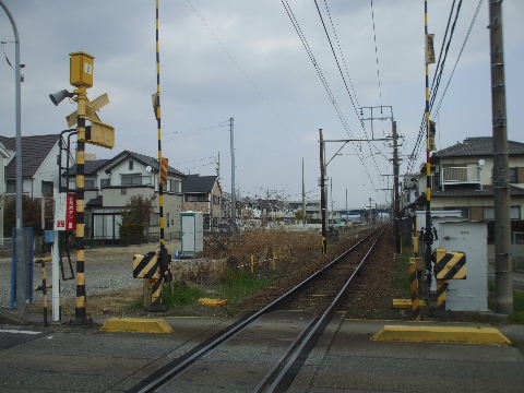 | 2016年12月23日。北から見る。踏切上の信号機はすぐ奥の交 差点の信号と連動して踏切内に車を入れさせない用のもの。 |