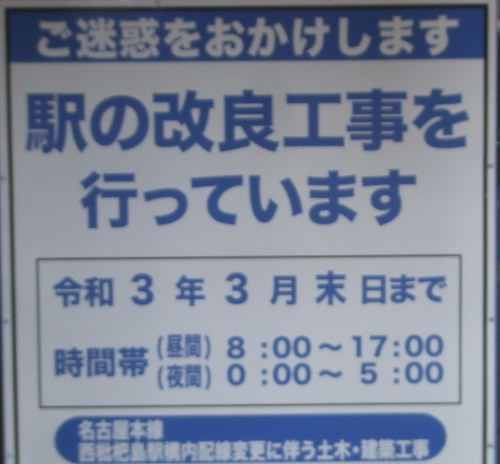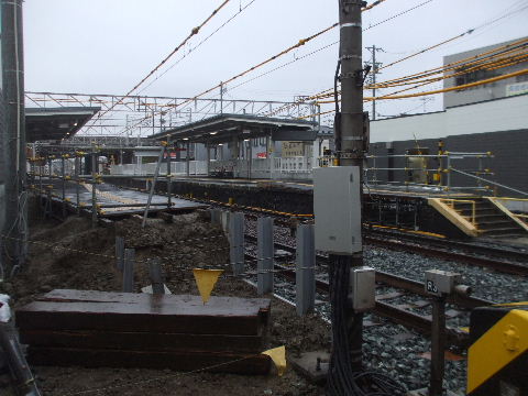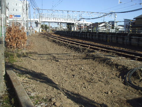 | 2020年02月09日。下りホーム岐阜寄りから古い ホームを撤去して副本線跡に土を入れ新しいホーム 作り始まる。 |