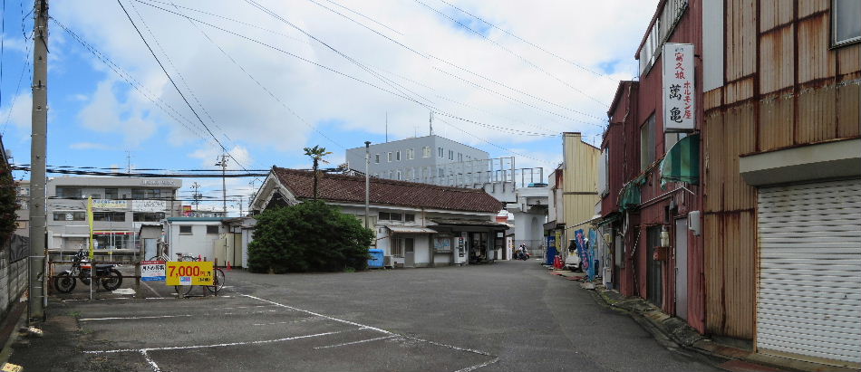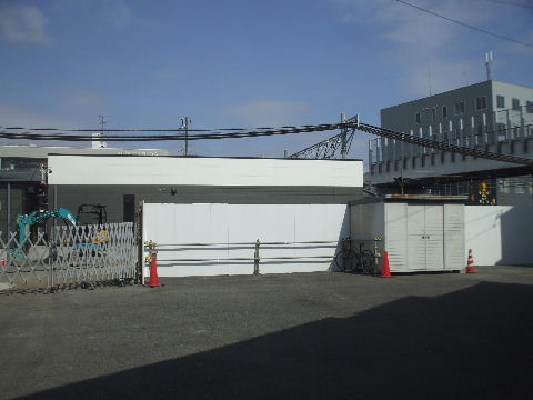 | 2021年01月24日。入口が虎柵で囲われた旧駅舎。 | 2021年01月24日。旧駅舎にはトイレがあったが 新駅舎にはなく周囲にも公衆トイレが見当たらない ので今のところは耐えられなくなったらこの辺の 物陰でで立しょんや野糞するしかない。この駅舎の 跡にトイレがてぎるのか。 |