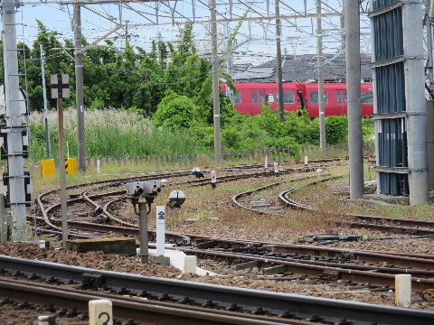 | 2019年06月08日。東海道線越しに見る。側線から 岐阜方面に入る渡り線がある。 |