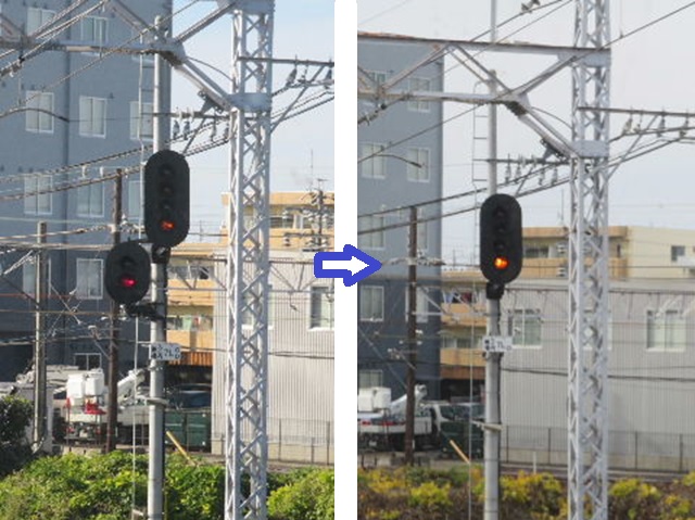 | 2019年12月08日。犬山線につながる線路は残るのか。 | 2019年12月21日。副本線が無くなった下りの 場内信号機。 |