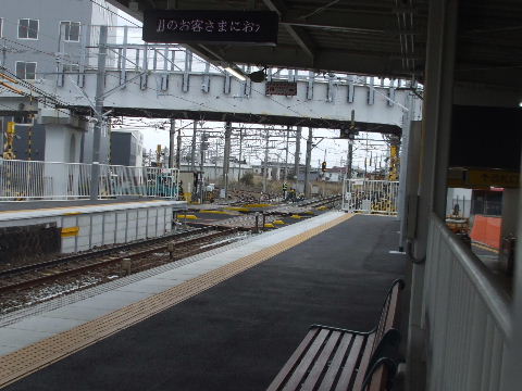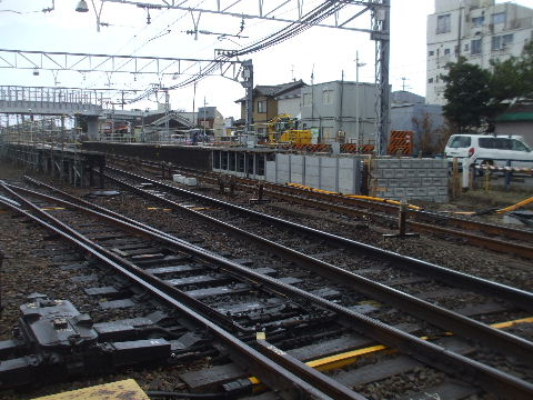 | 2021年02月14日。構内踏切のあった所までホーム 延長工事中。 |