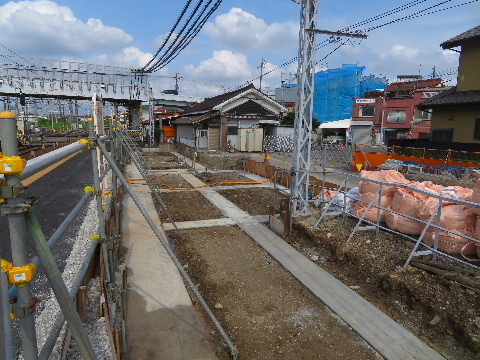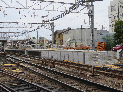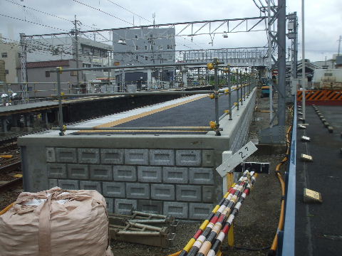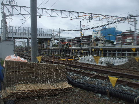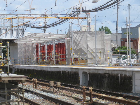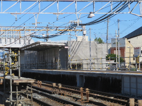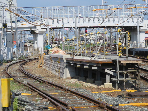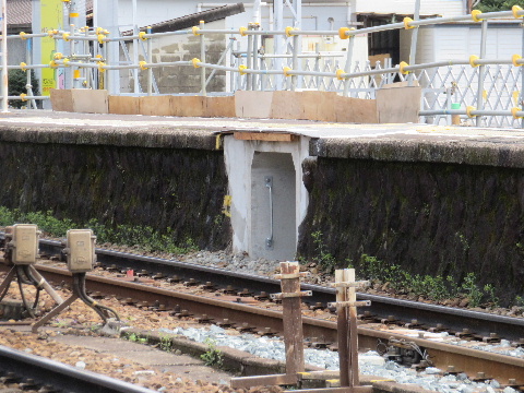 | 2020年07月05日。現駅舎とホームの間に新しい 下り線用駅舎の基礎ができている。 |