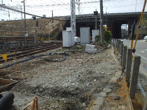| 2024年10月27日。駅の西側、東海道線のすぐ下に 歩行者用の踏切があったがいつの間にかなくなって いる。北から見る。 |