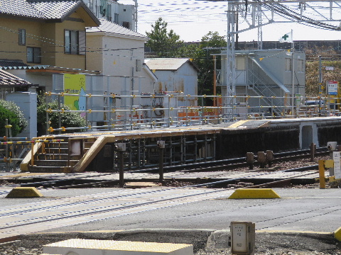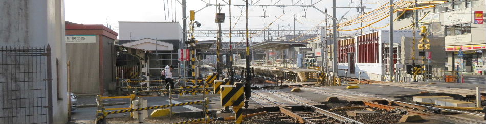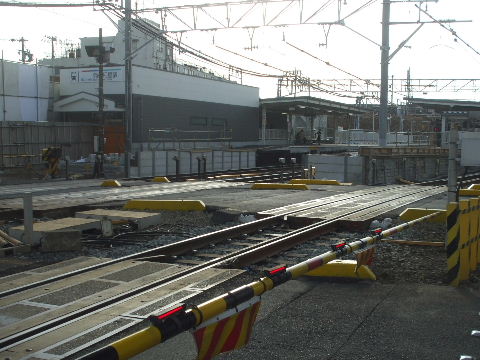 | 2021年01月24日。上下とも踏切脇から駅舎へ入る。まだ元の駅舎とか残っているので仮囲いがしてある。 |