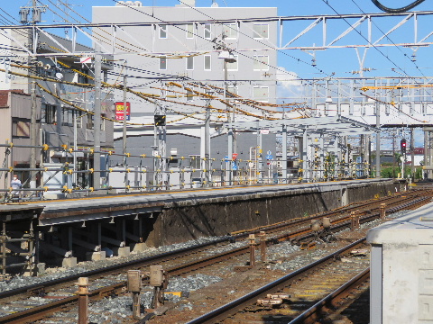 | 2020年08月23日。名古屋寄り、ホームと線路の 間に駅舎の基礎っぽいコンクリート。 |