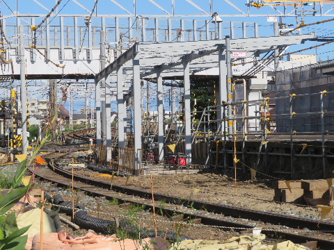 | 2020年10月18日。左、上りホームも屋根が出来てきた。 |