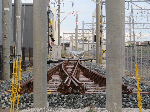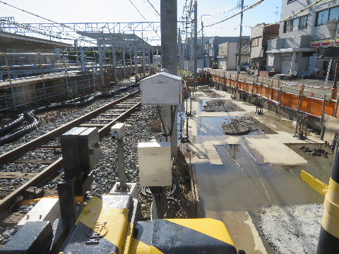 | 2019年12月08日。名古屋寄りの踏切。陸橋の下で レールが切断されている。 |