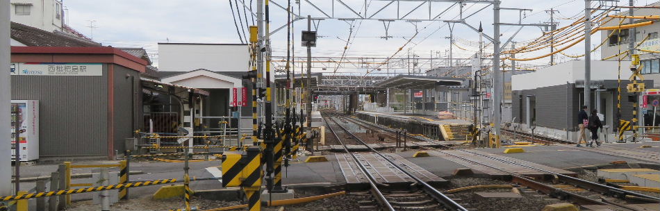 狭い2面4線駅として有名な名鉄の西枇杷島駅が副本線無しの2面2線に改造されることになったようなので見物します。