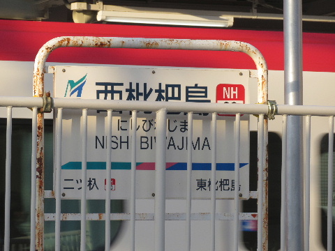 | 2020年12月27日。今までの両面ホーム用の 駅名板。裏側は柵にピッタリ引っ付いている。 |