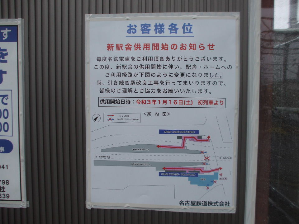 | 2021年01月24日。今まで上下とも下りホーム側に ある改札口から入っていたのでこの前を通ると 「名古屋方面はあちら…」みたいな音声が流れる。 |