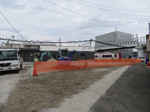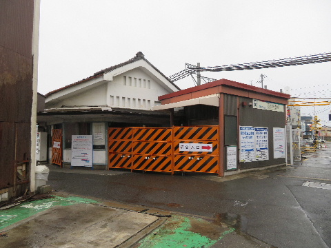 | 2021年03月20日。旧駅舎跡とその前にあった 駅前広場のような空地だった所が囲われている ので整備する工事が始まるようだ。 |