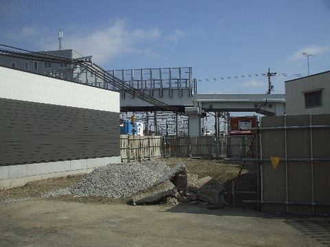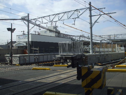 2021年03月20日。構内踏切跡のホームが出来ている。 |