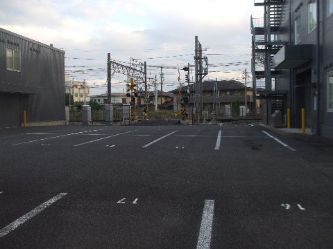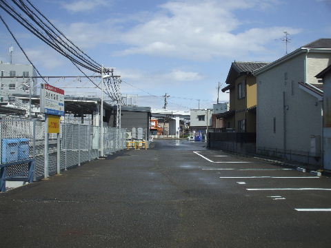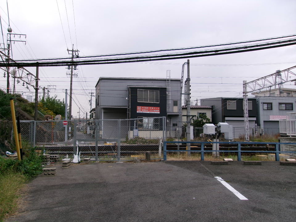| 2021年10月31日。名古屋寄りの踏切脇にある名鉄の 敷地内に線路が敷かれている。 |