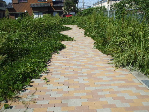 2011年9月23日。作っただけでほったらかしなので蔓草が歩行者通路を覆う。 |