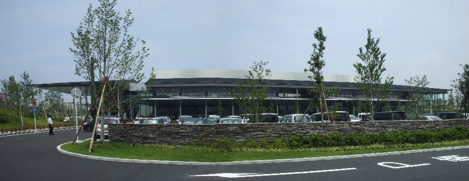 | 建物正面から。正面の駐車場がいっぱいになるくらいの来場者。 |
