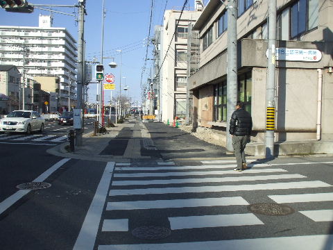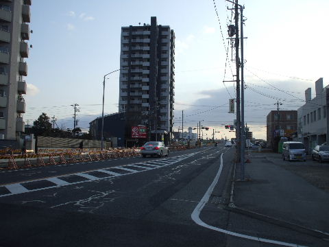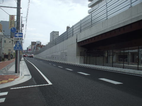 2016年03月12日。西側。一車線のように見えるので一方通行か。 |
