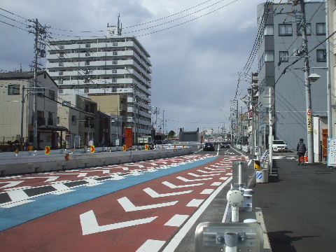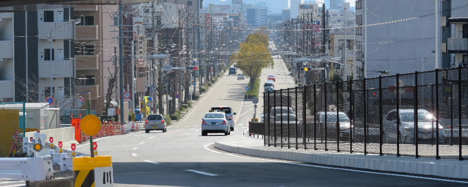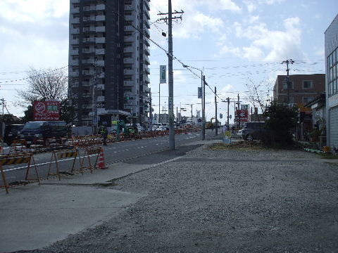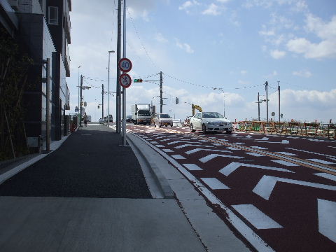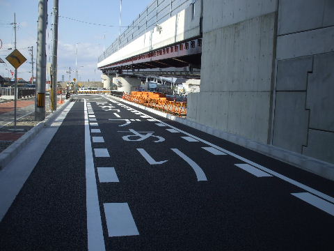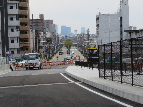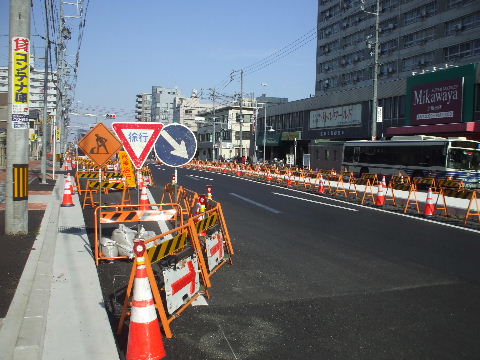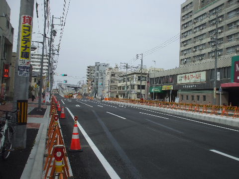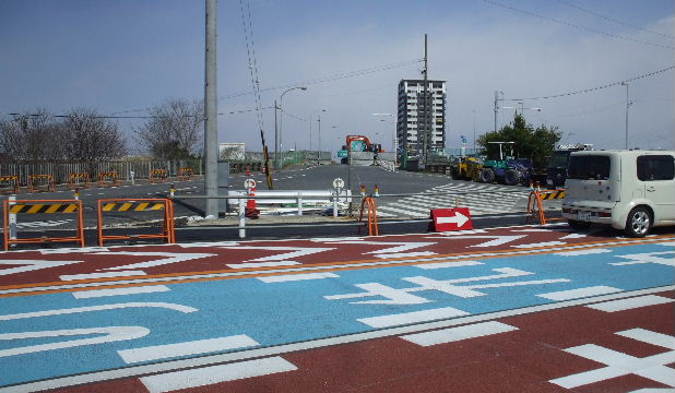 2017年03月28日。北方向はまだ歩道と一番端の車線が途切れて いる。 |