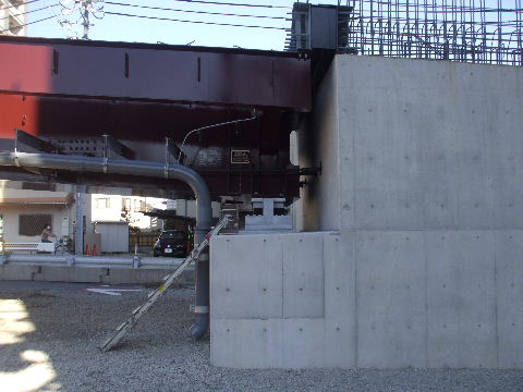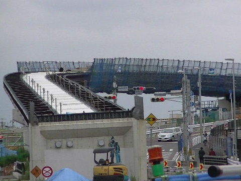 | 2011年10月31日。歩道部分は捲られて鉄骨のみ残り下がスケスケ。
