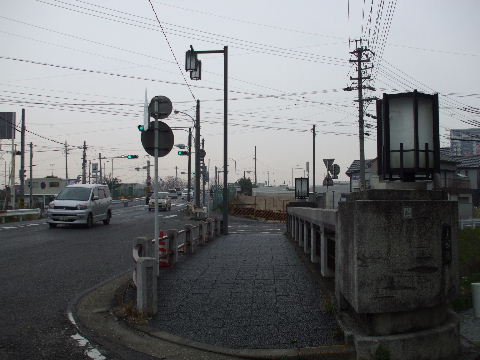 2017年03月28日。右カーブして上飯田からの道に突き当っていた のが真っすぐ橋の方につなぎ変えられた。 |