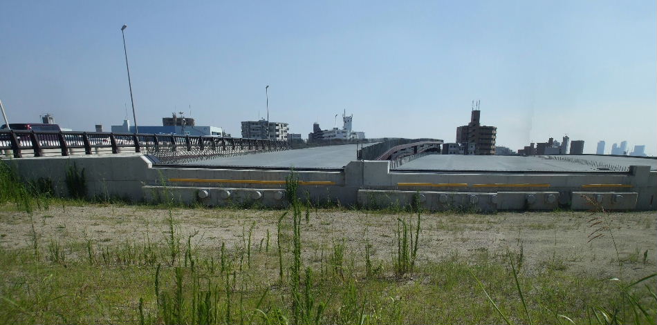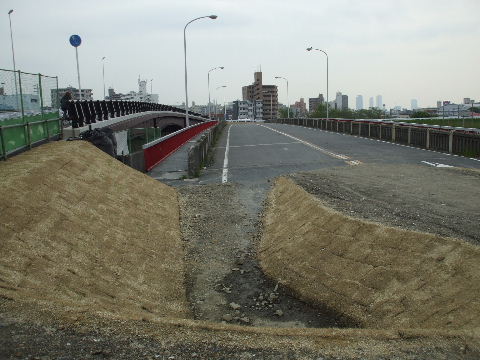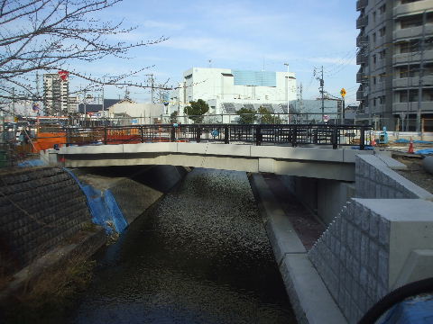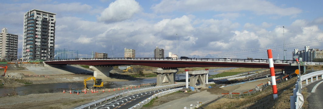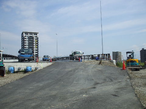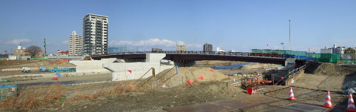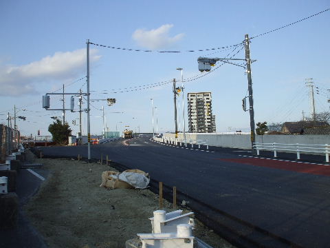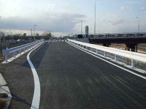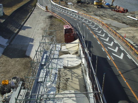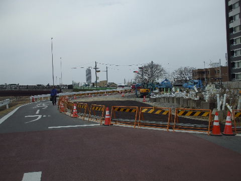 | 2011年2月13日。堤防道路も新しい橋につながる様に作り直されている。 |