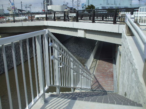 | 2015年4月15日。庄内用水橋の南に階段が取り付けられている。 |