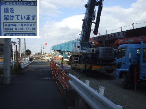 | 2016年01月10日。立体車線桁架け工事中。 |