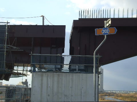 2014年12月23日。南寄りの橋脚。他より少し高い橋中央寄り車線 で工事中。 |