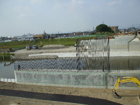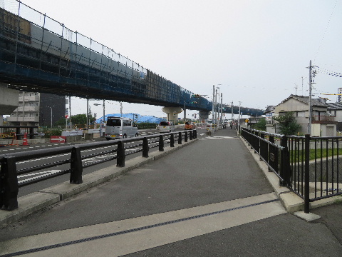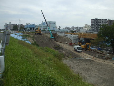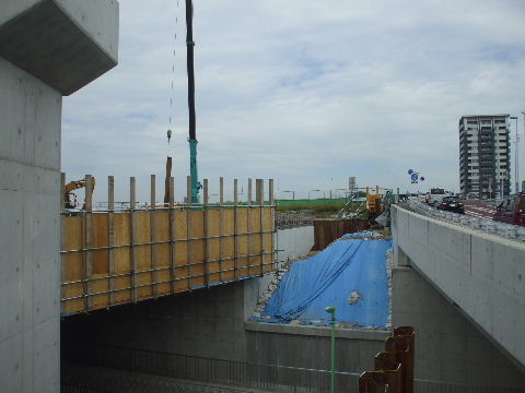 2014年8月17日。夫婦橋の北側に立体交差車線用の橋脚ひとつ 出来る。 |
