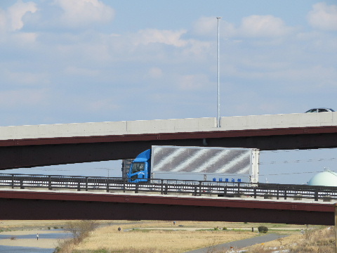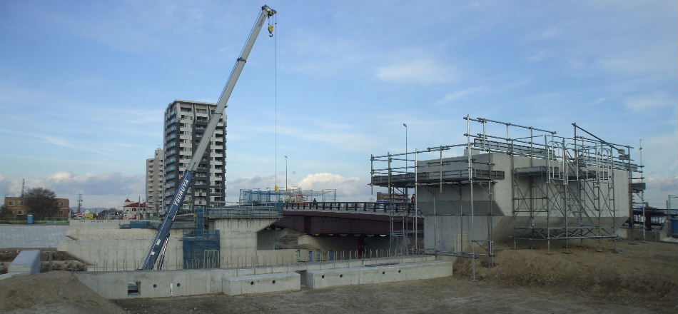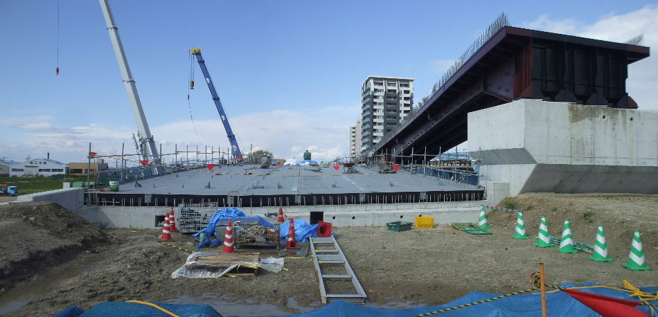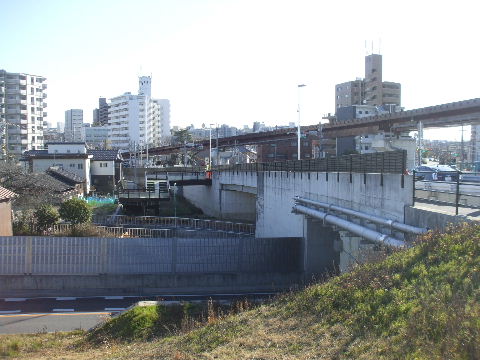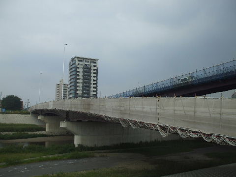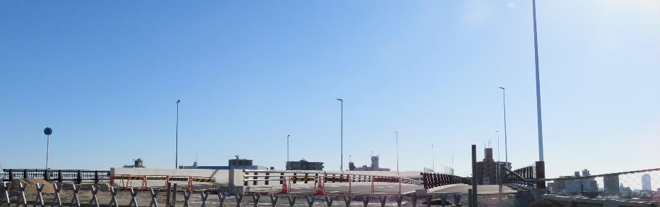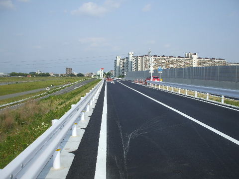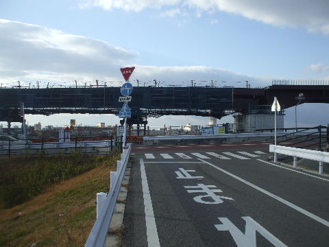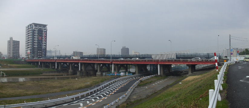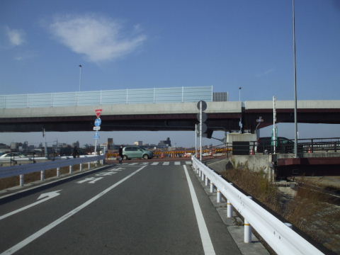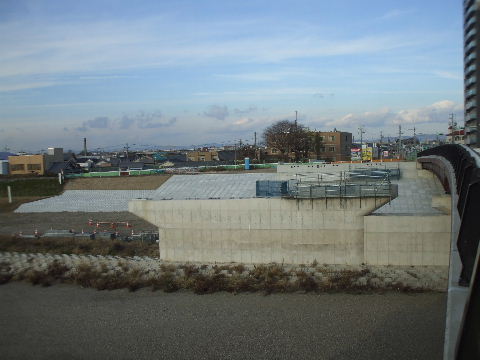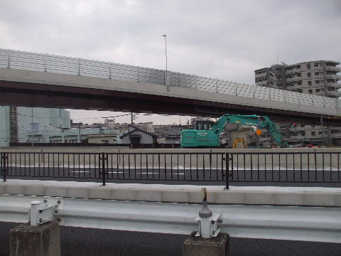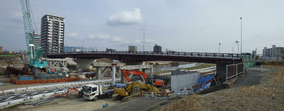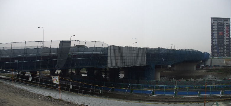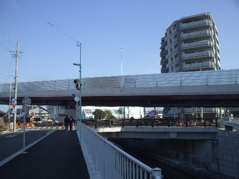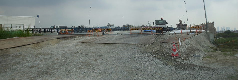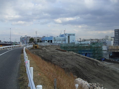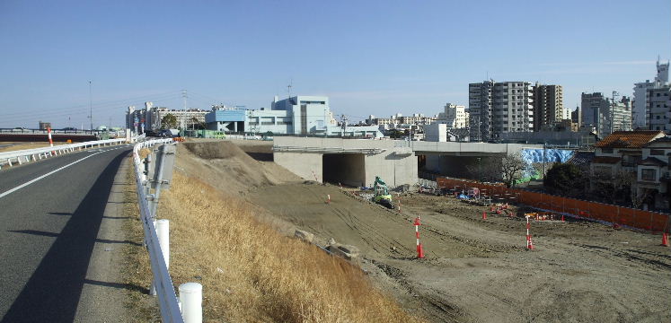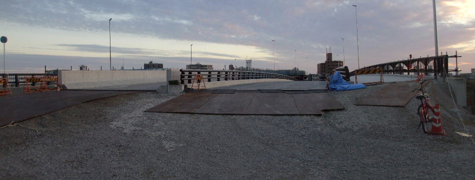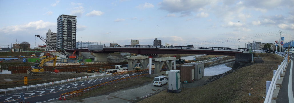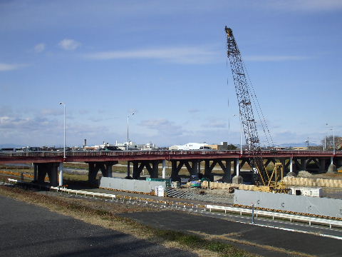 | 2016年01月10日。立体交差車線が堤防を越えて右(南)の方までつながった。 |