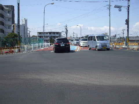 2018年08月19日。出来た。外側車線が北→南用、内側車線は元 の三階橋南交差点跡、西→南用。 |