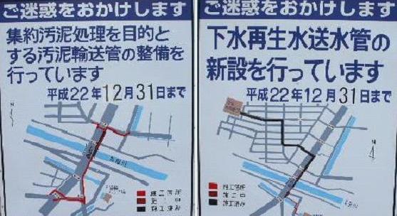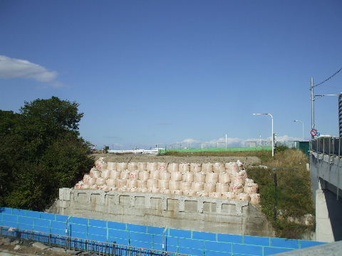 | 2011年10月31日。堤防側から見る。下のシート部分は庄内用水の工事か。 |