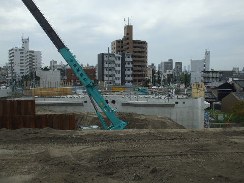 2013年5月26日。北側は出来ている。立体交差車線も殆んど同じ高さに下りてきている。 |