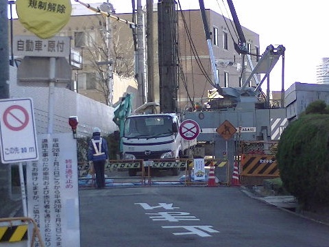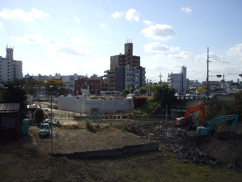 | 2011年12月4日。アスファルトを剥がし、コンクリートを捲り、配管を外すと橋脚だけが残る。 |