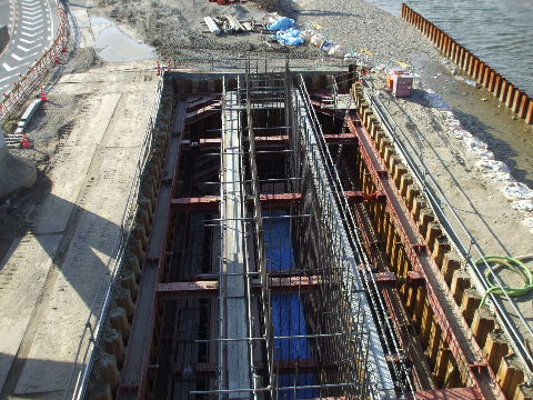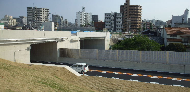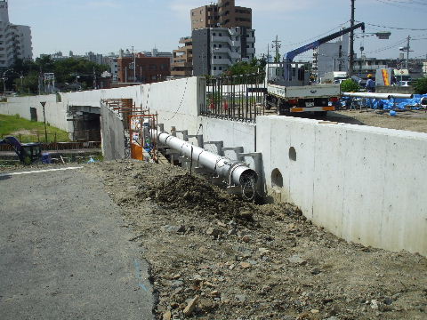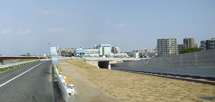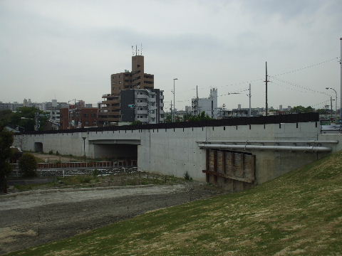 | 2013年5月26日。堤防道路トンネル、用水トンネルと並ぶ。 |