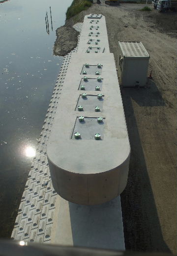 2013年3月3日。南側堤防に近い所にある旧橋基礎の周りを固 めている。 |