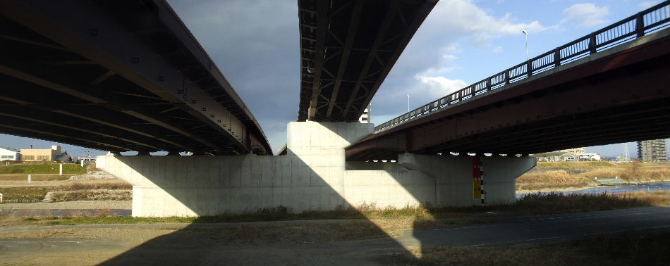 | 2016年01月10日。橋の下、河川敷から見る。 |