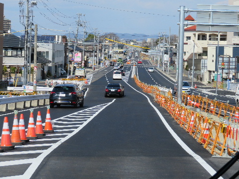 | 2017年12月24日。左、上飯田方向は車線が中央寄りに移動し歩道寄りの車線を整備中。 |