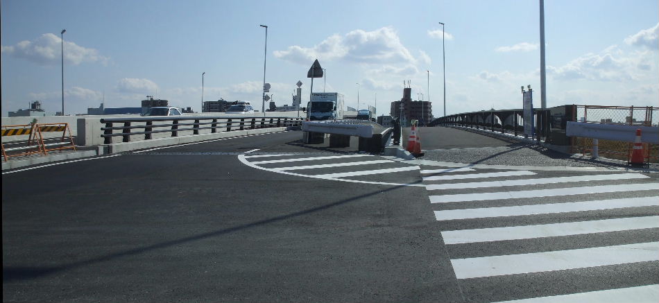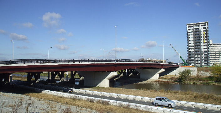 現在の往復二車線の橋を往復六車線の橋に架け替え、内、一車線は橋南の三叉路での渋