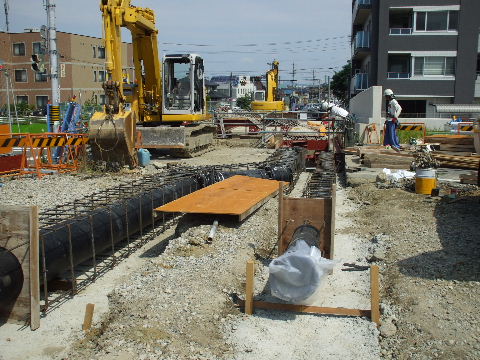 | 2015年08月01日。立体車線、平面車線共路盤出来あがる。 |