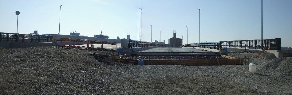 | 2014年1月26日。橋の北へ向かって道路を広げる工事中。