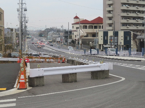 2017年03月05日。逆方向。庄内用水の橋までは中央分離帯と舗 装も出来ている。 |