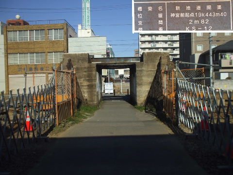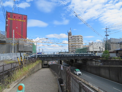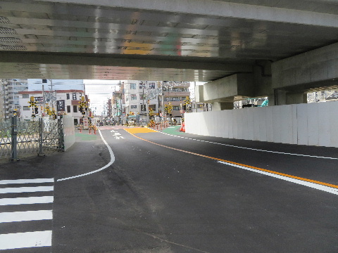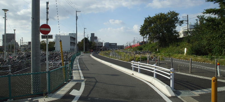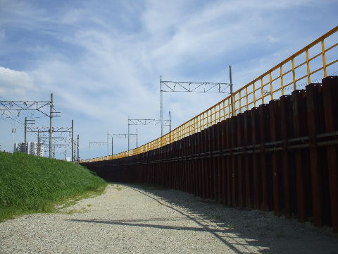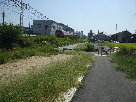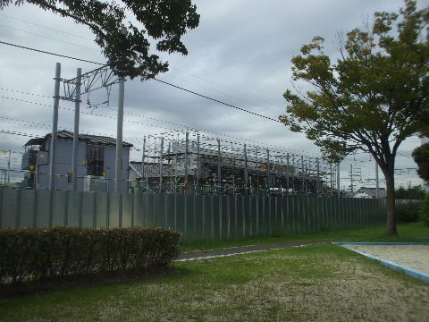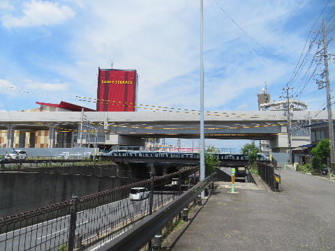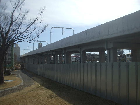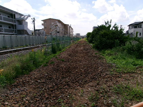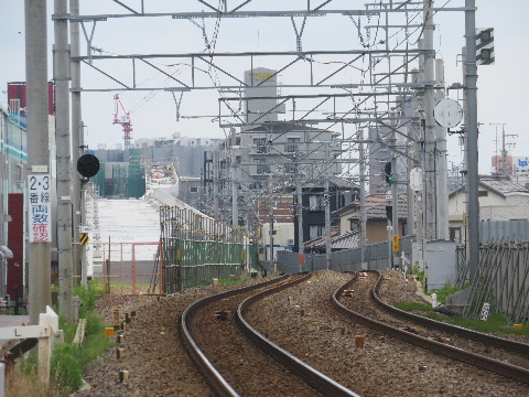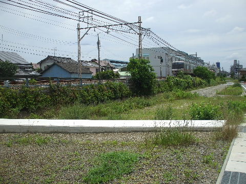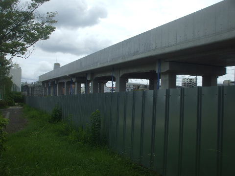 | 2021年07月11日。草刈公園横。手前、地平に下りていく方向 へ高架橋がつながっていく。 |