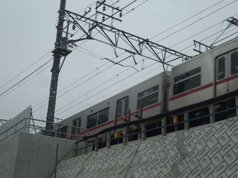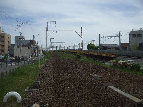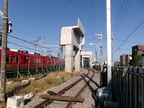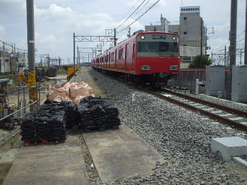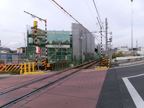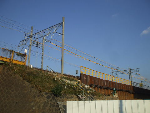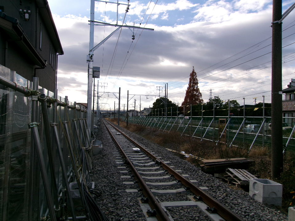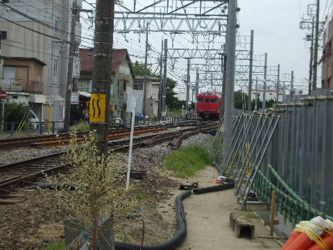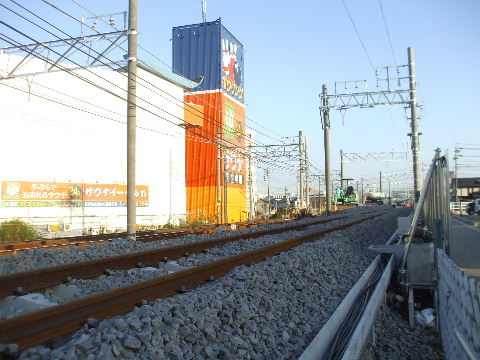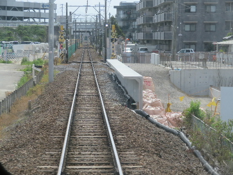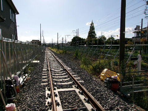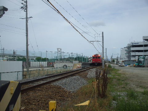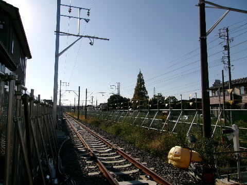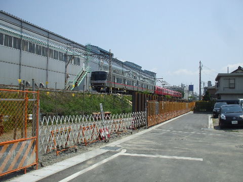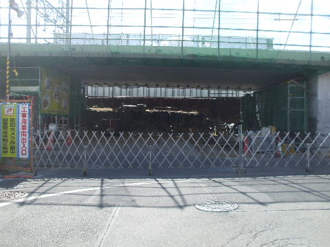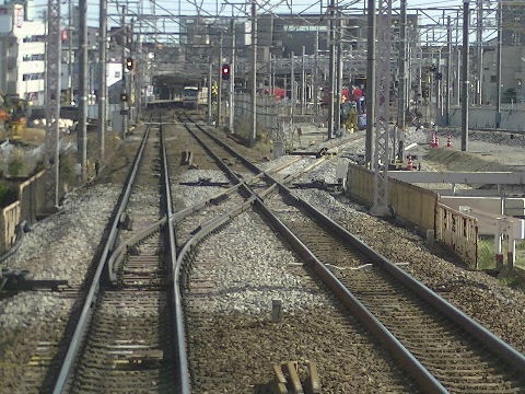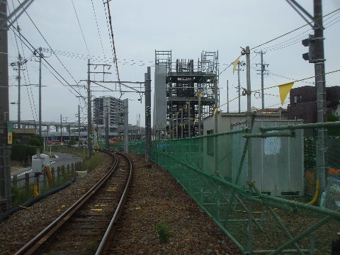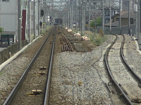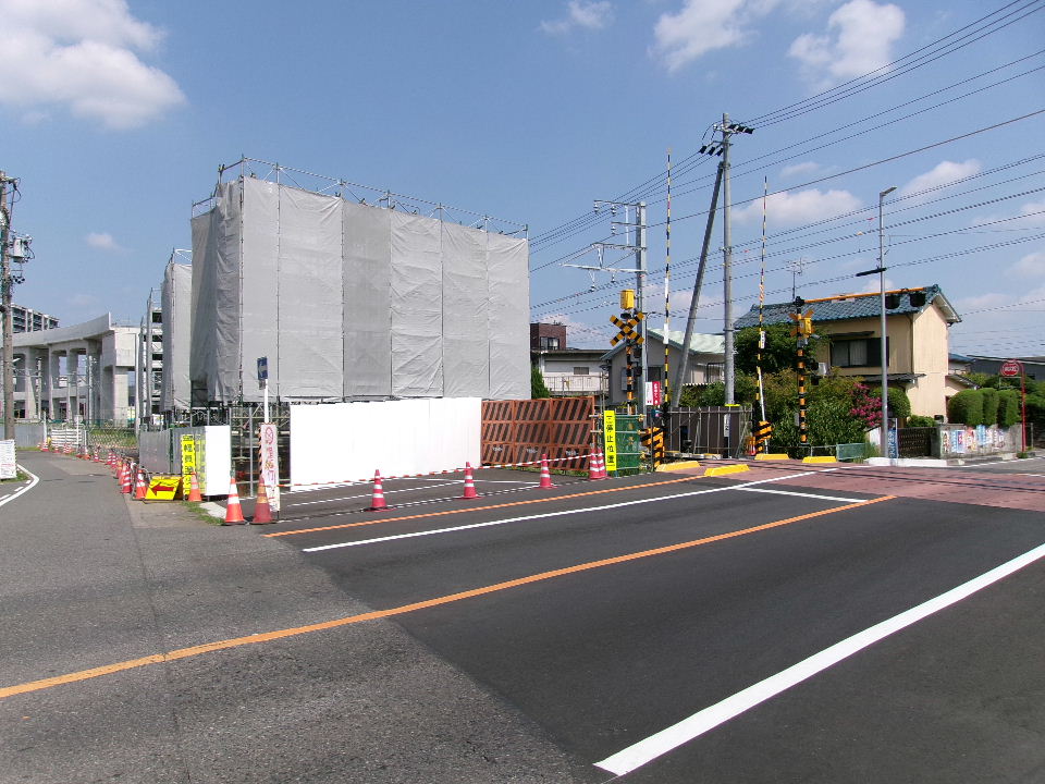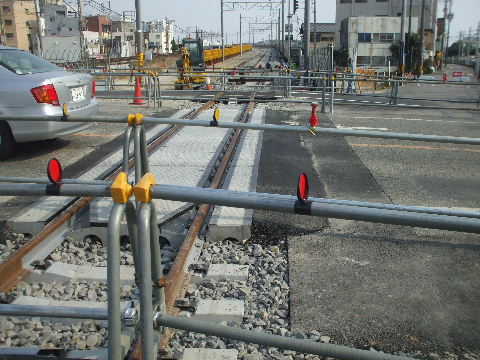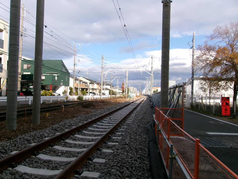 | 2015年10月04日。仮線が出来たあと、初めて電車が通っているの を見た。回送電車がゆっくり一つ木方向へ走って行った。 |