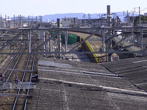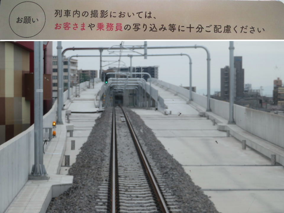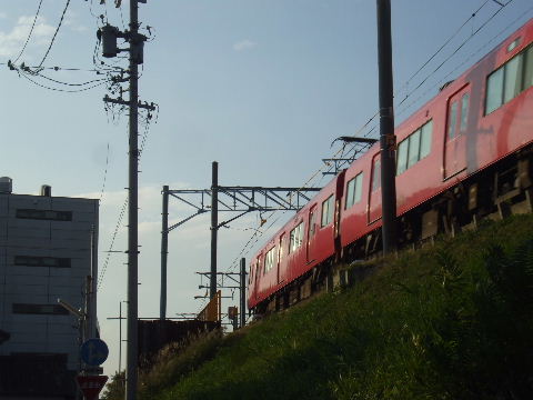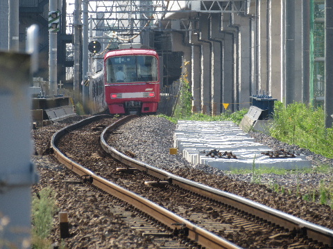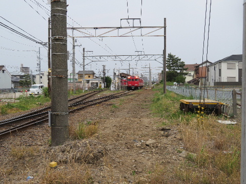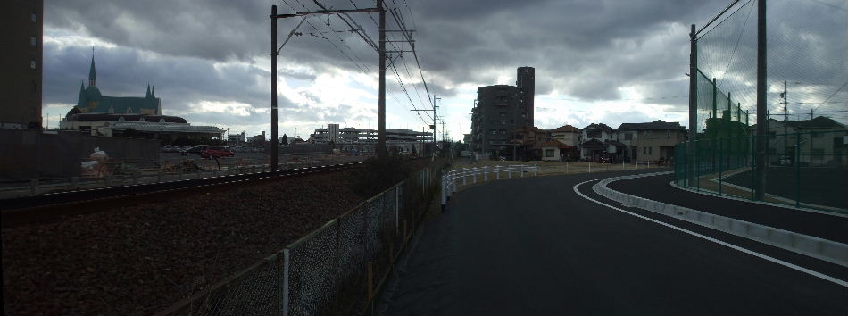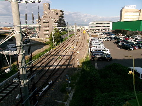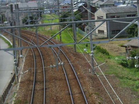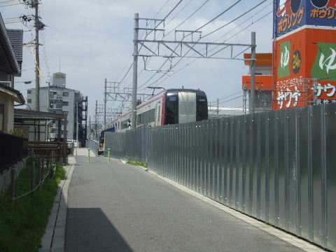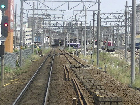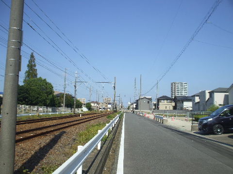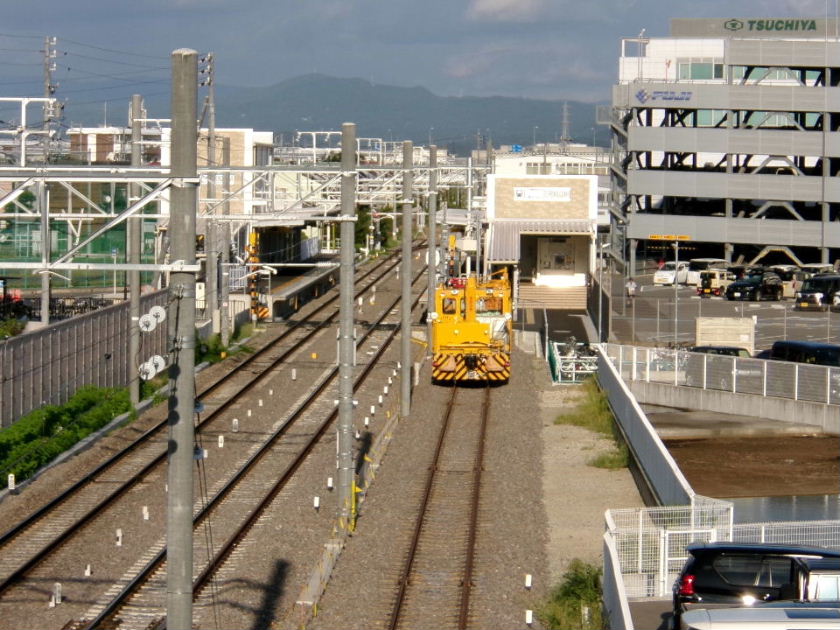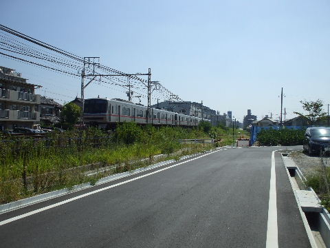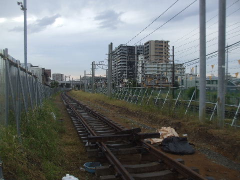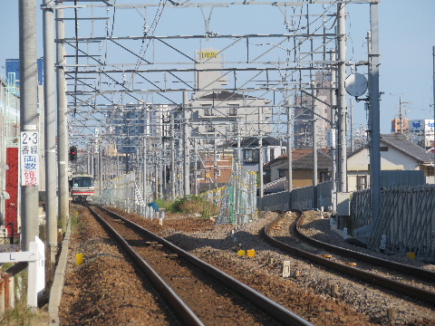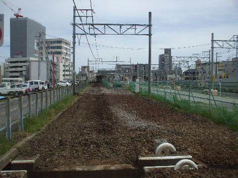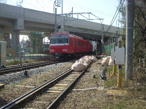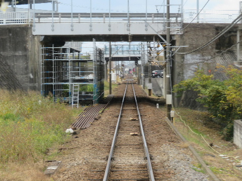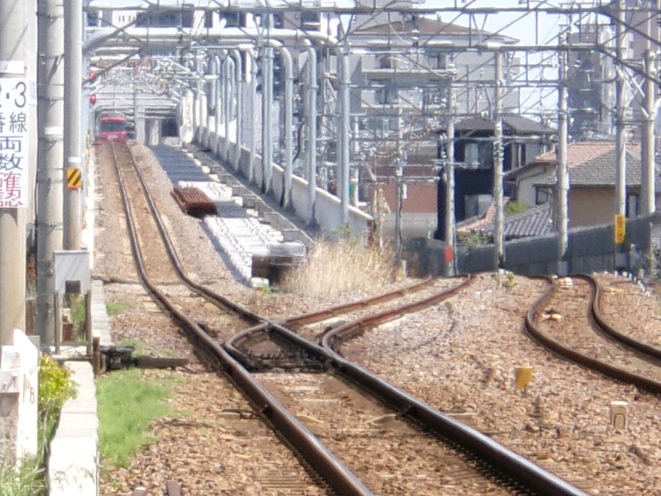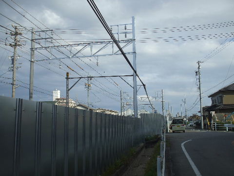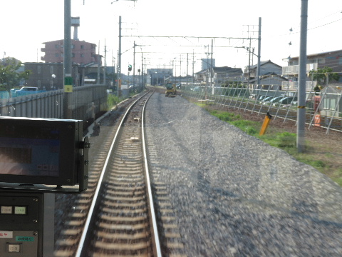 | 2015年10月04日。仮線が出来たあと、初めて電車が通っているの を見た。回送電車がゆっくり一つ木方向へ走って行った。 |