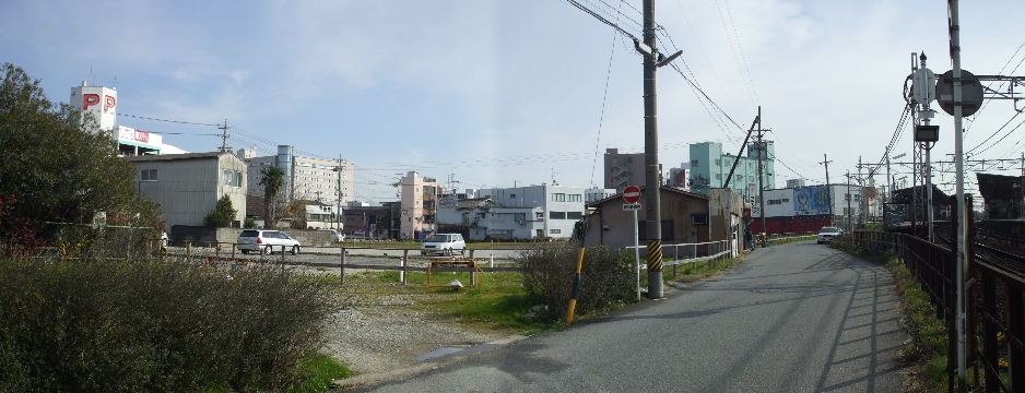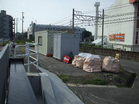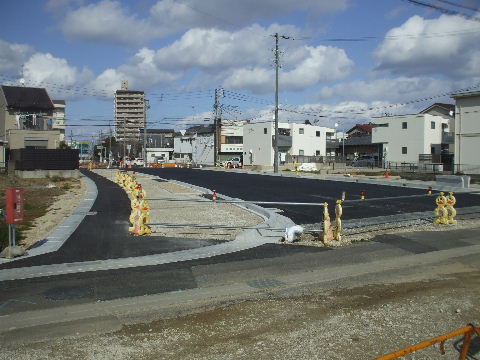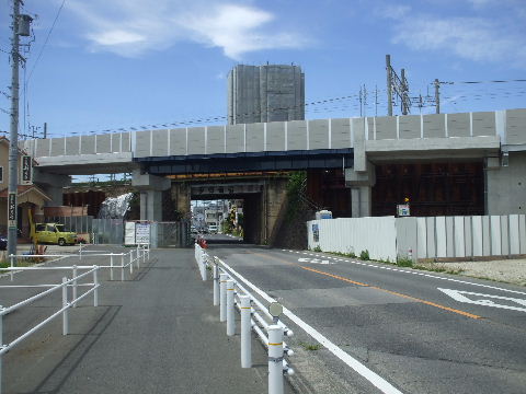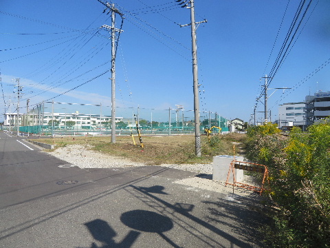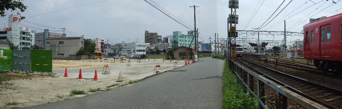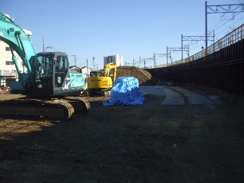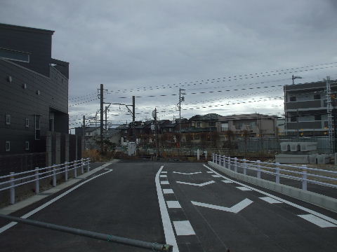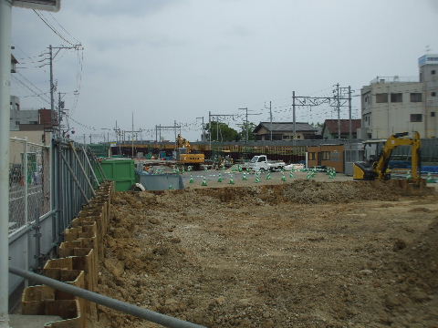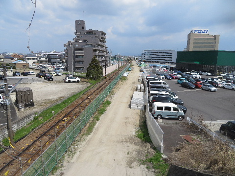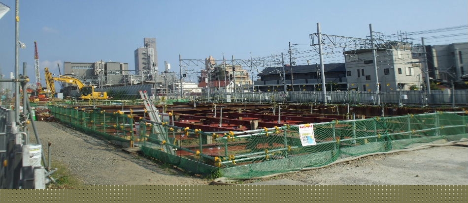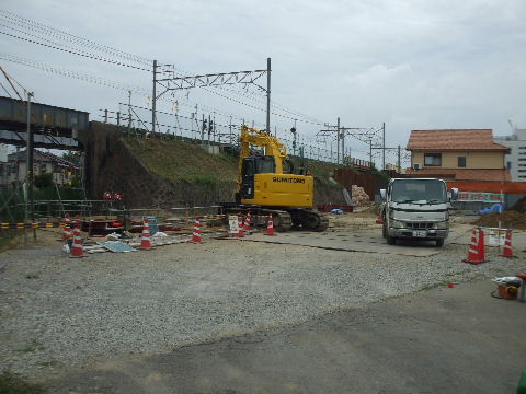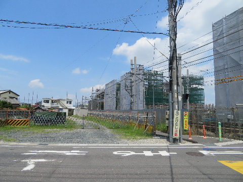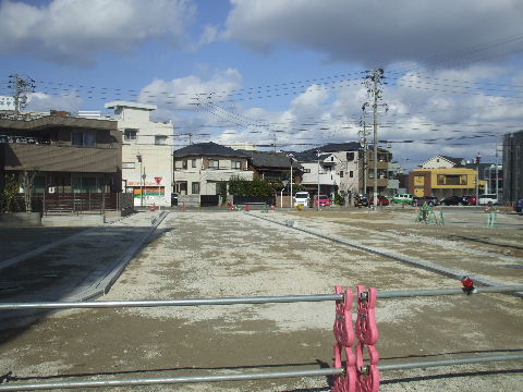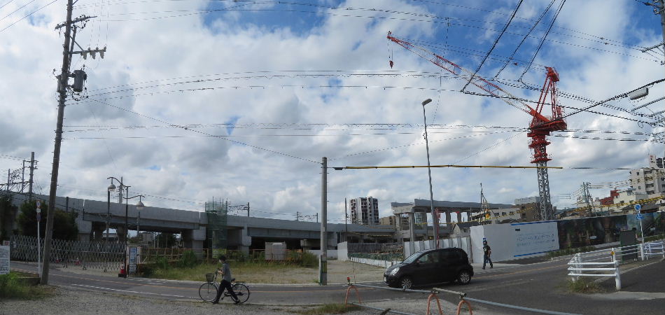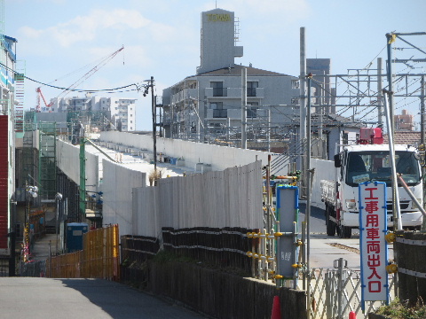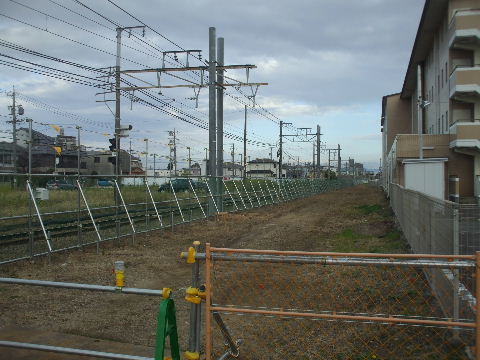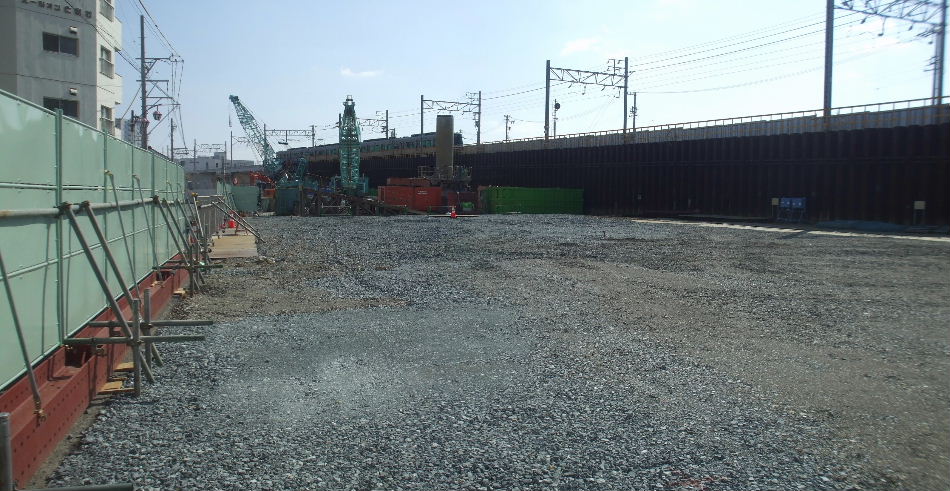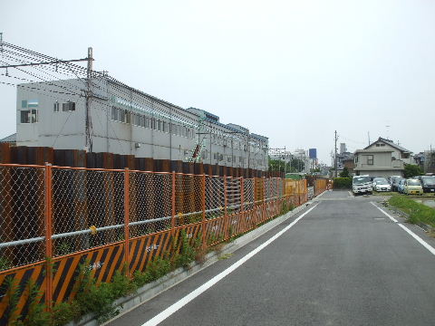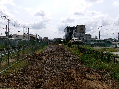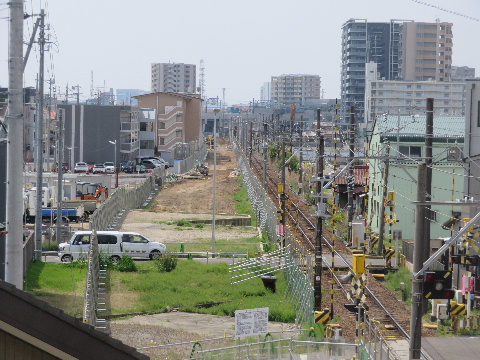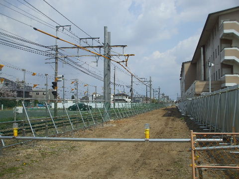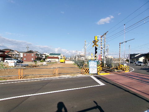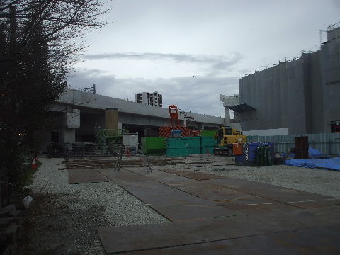 | 2022年04月23日。北東側の建物が立ち退いて広く空いていた所、区画して宅地造成中。奥に高架橋が見える。 |