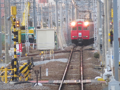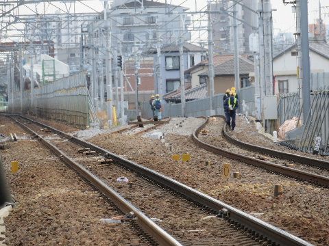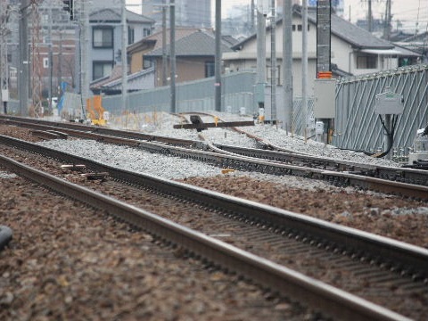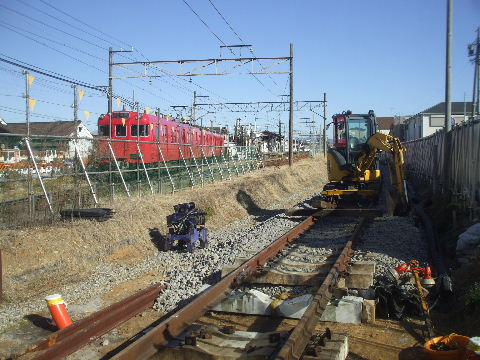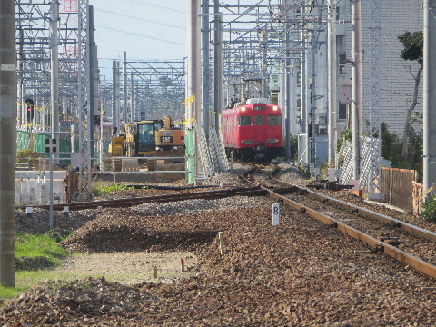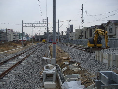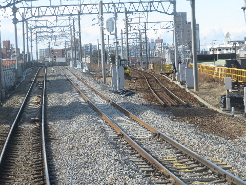 | 2024年02月18日。電車が新しく敷いた方の線路を走り 元からある方の線路の整備中。 |
