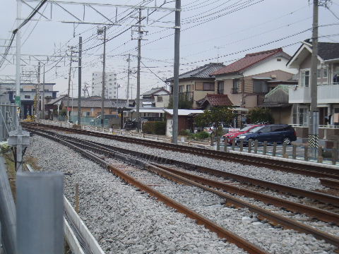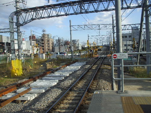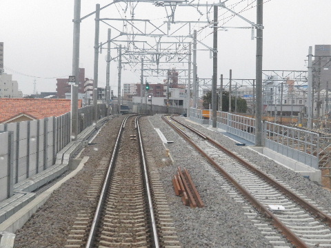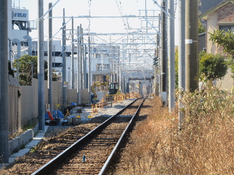 | 2020年02月23日。ホームから見る。手前の踏切部分のも近々上り 仮線の工事が行われるようだ。 |