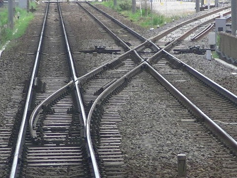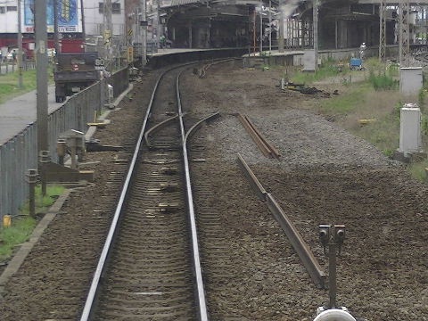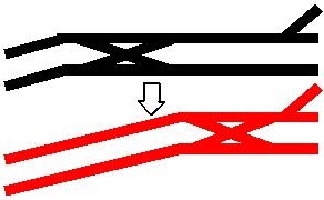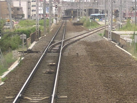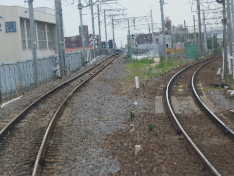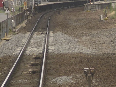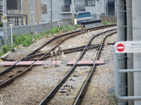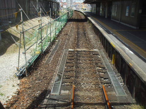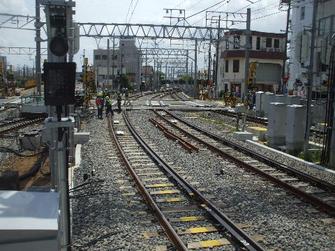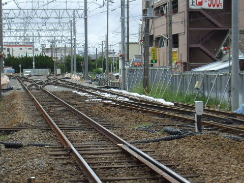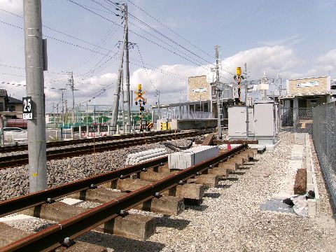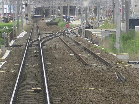 | 2016年07月03日。このクロス部以外は旧下り線レール撤去済み。 | 2016年08月14日。旧下り線レール無くなる。 |