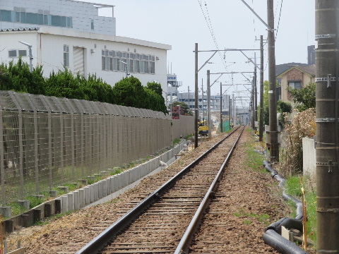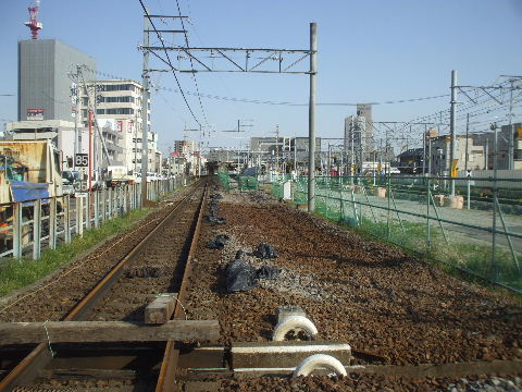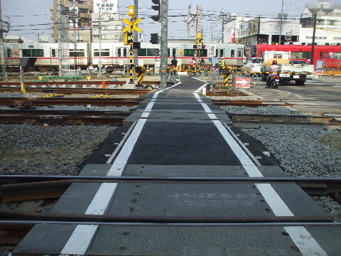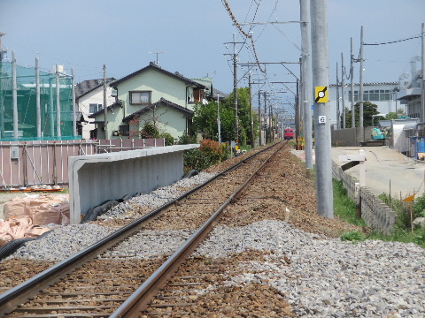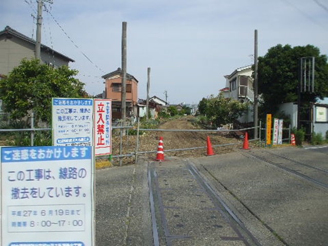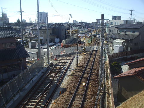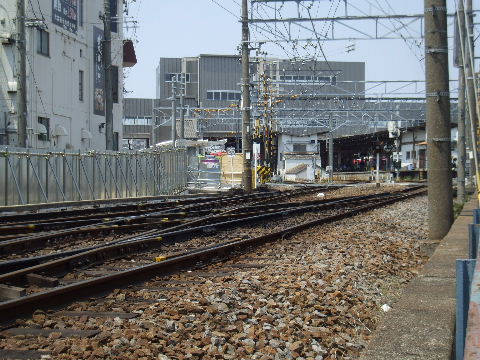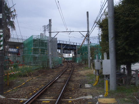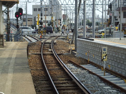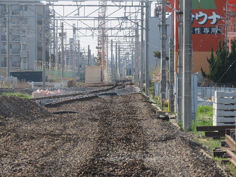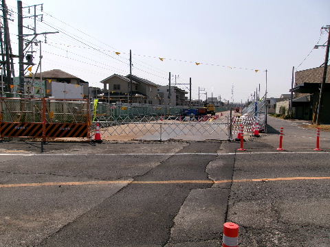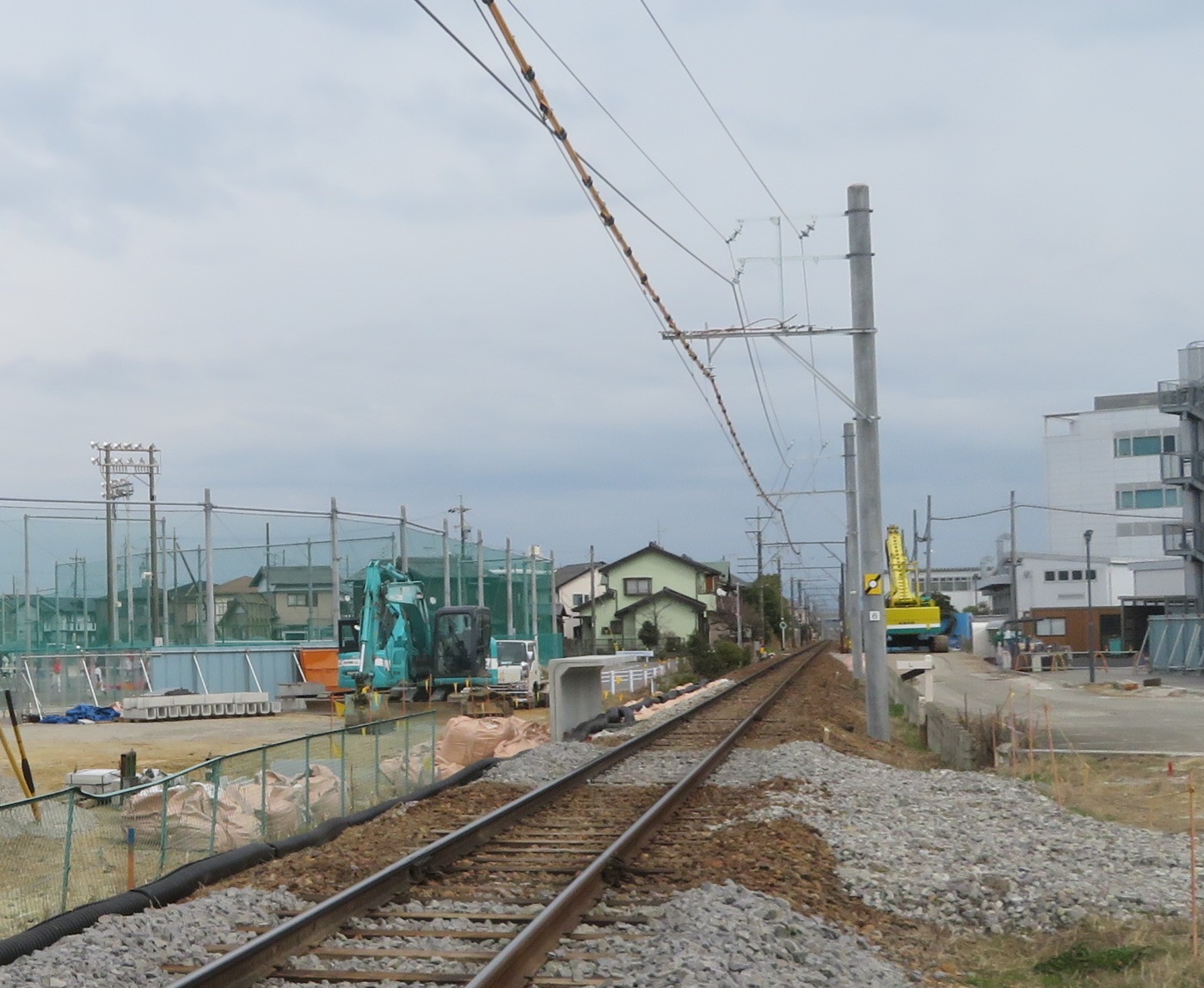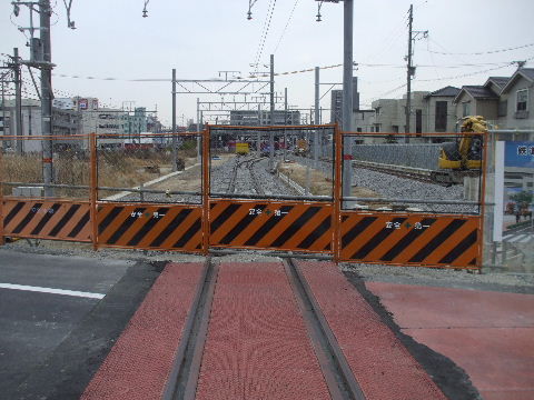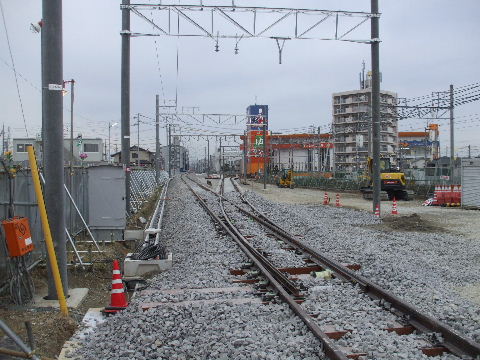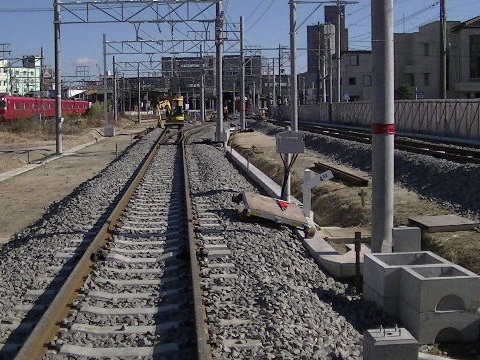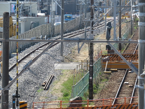 | 2018年03月30日。切り替え地点から駅北の踏切までの旧線の線路 と架線が撤去された。 |